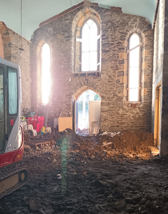 The whole renovation process took two and a half years to complete, with the contribution and enjoyment of the family. Jill's dad, David Urquhart of Urquhart Joinery Services, oversaw the project along side Jill to turn vision into reality. Using local trades people to restore the building, the original stonework and beautiful stained glass window were brought back to life, to create a wonderful venue for Portsoy and the surrounding area. The original spire tower bell also sits proudly inside as a decoration.